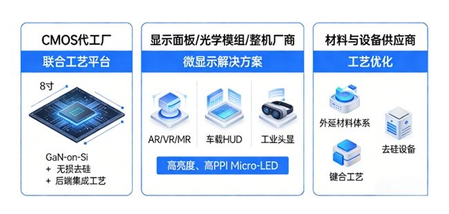 目前 ,该平台已实现微米级乃至亚微米级发光单元阵列,且工艺流程与主流8寸CMOS产线高度兼容,可直接利用现有半导体代工厂的成熟设备 ,大幅降低产线投资门槛 。